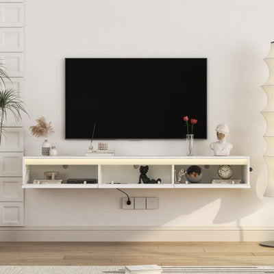 Floating TV Stand, Wall Mounted TV Shelf With Led Lights & Power Outlet,High Gloss TV Cabinet For Tv Stands For Living Room